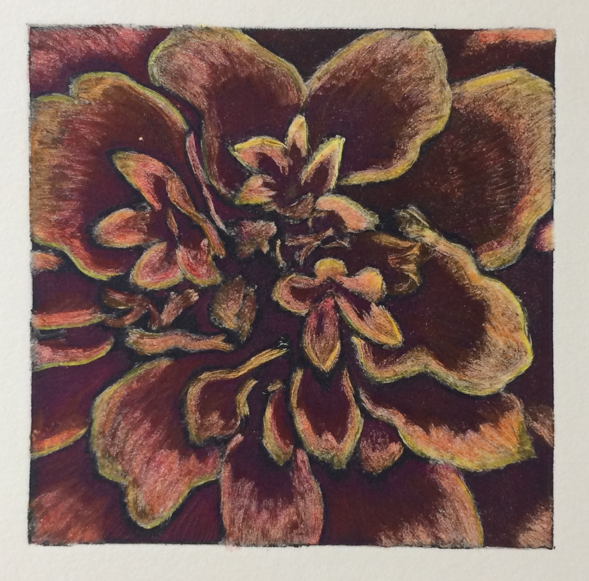 - This collagraph print from 2012 is the first in the orchid series. This oncidium orchid was the first of many to die for my printmaking.