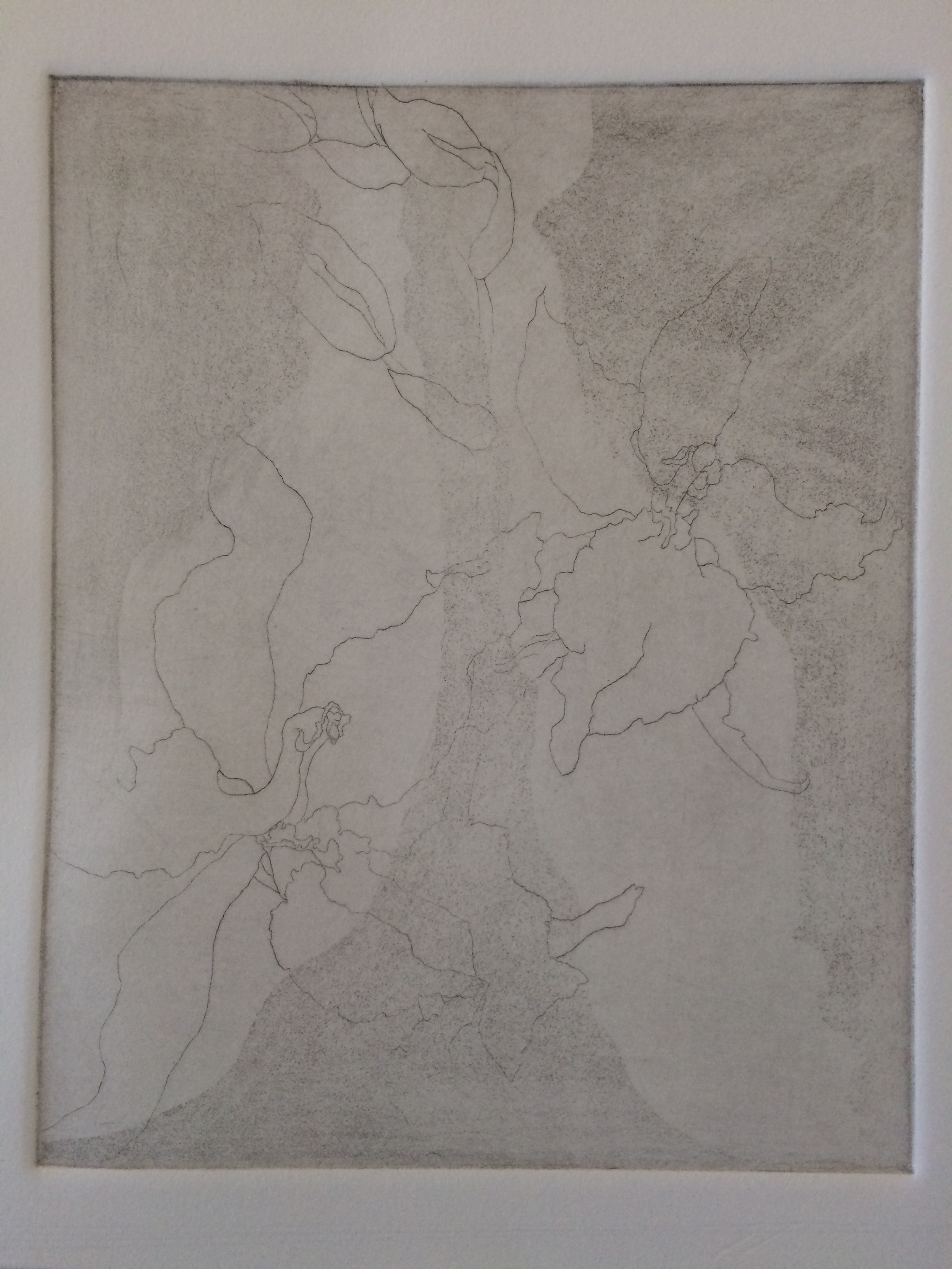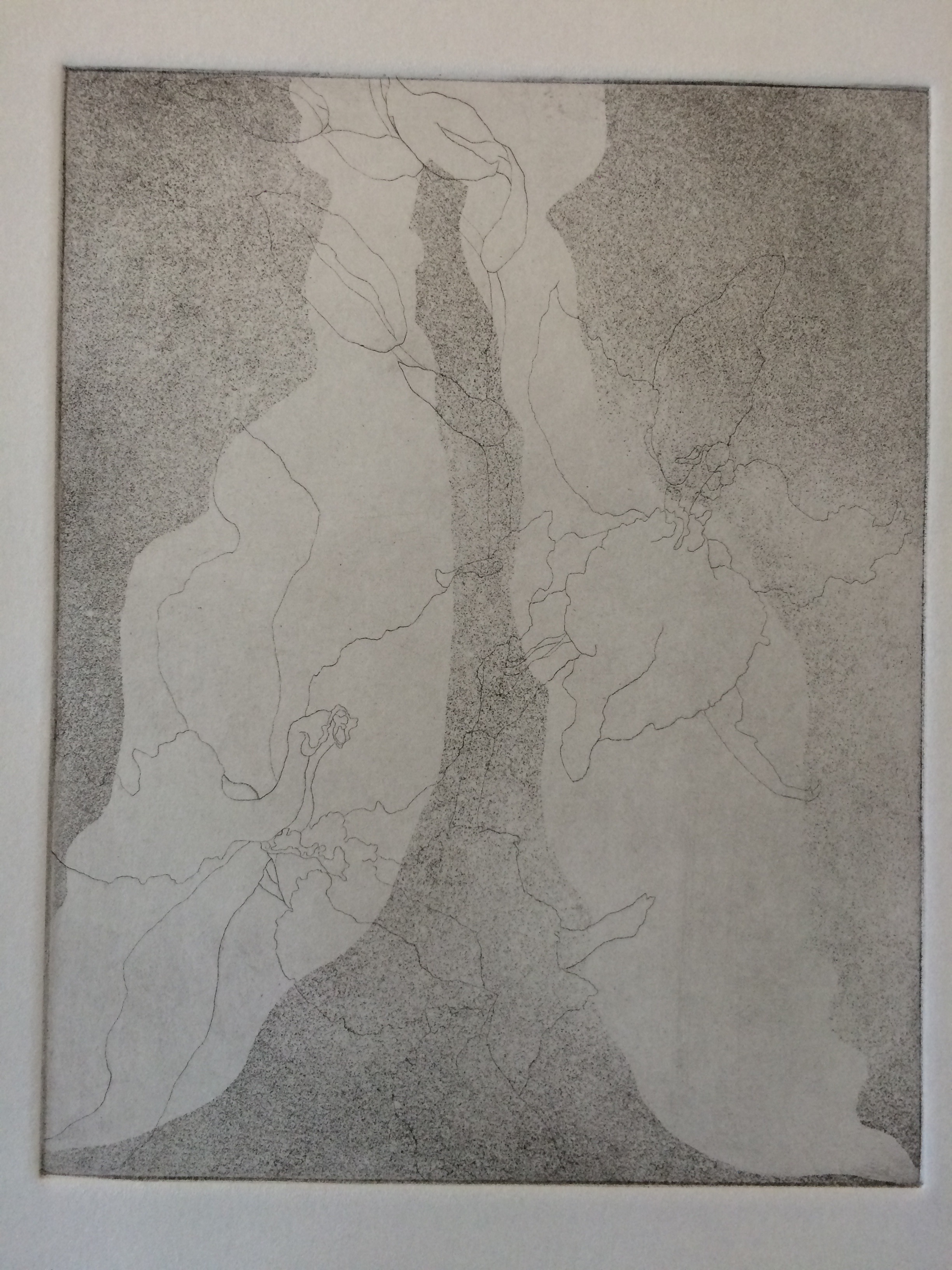 I had the bright idea that I should recycle an old plate with a very light, poorly executed spraypaint aquatint. I thought it would be pretty easy to remove, but I was wrong. Friends in the studio have had success using power sanders to remove old imagery from plates, but given how tight my living space is at the moment, buying a large, expensive, infrequently used tool is not presently on the agenda. Here are the results of a little scraping, and a lot more scraping. I bet I can knock it out completely in a couple more hours.